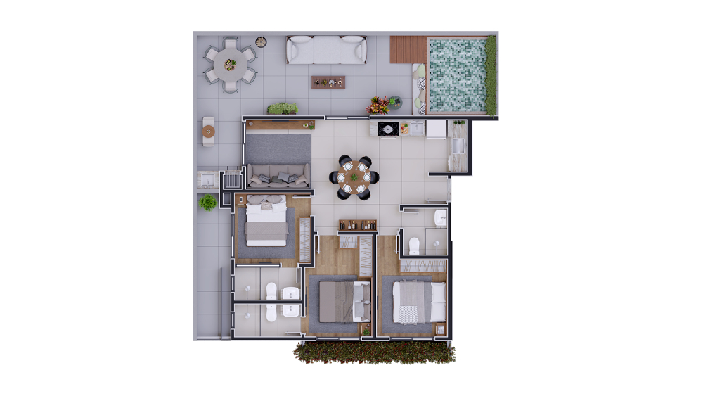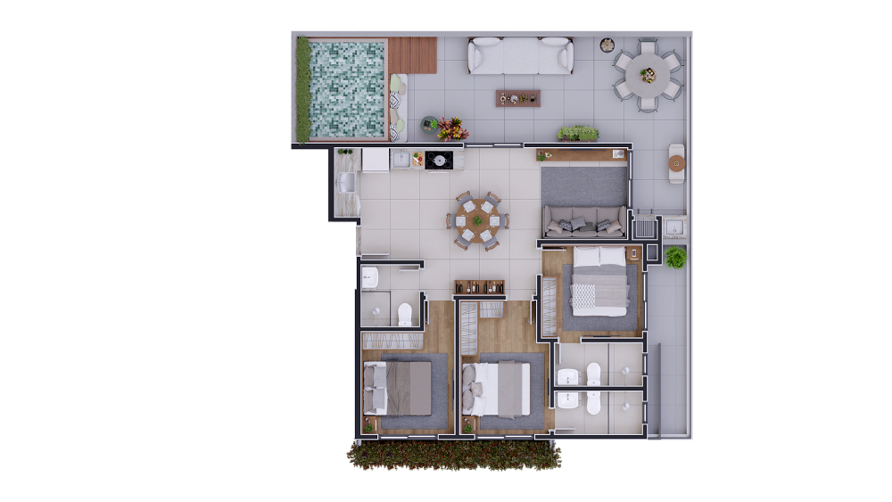 3 Q | 3 Suítes + Terraço privativo c/ piscina
